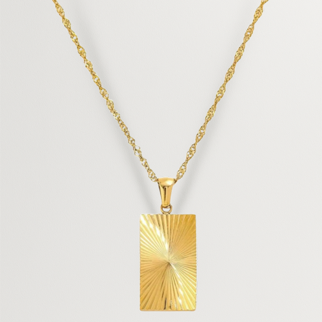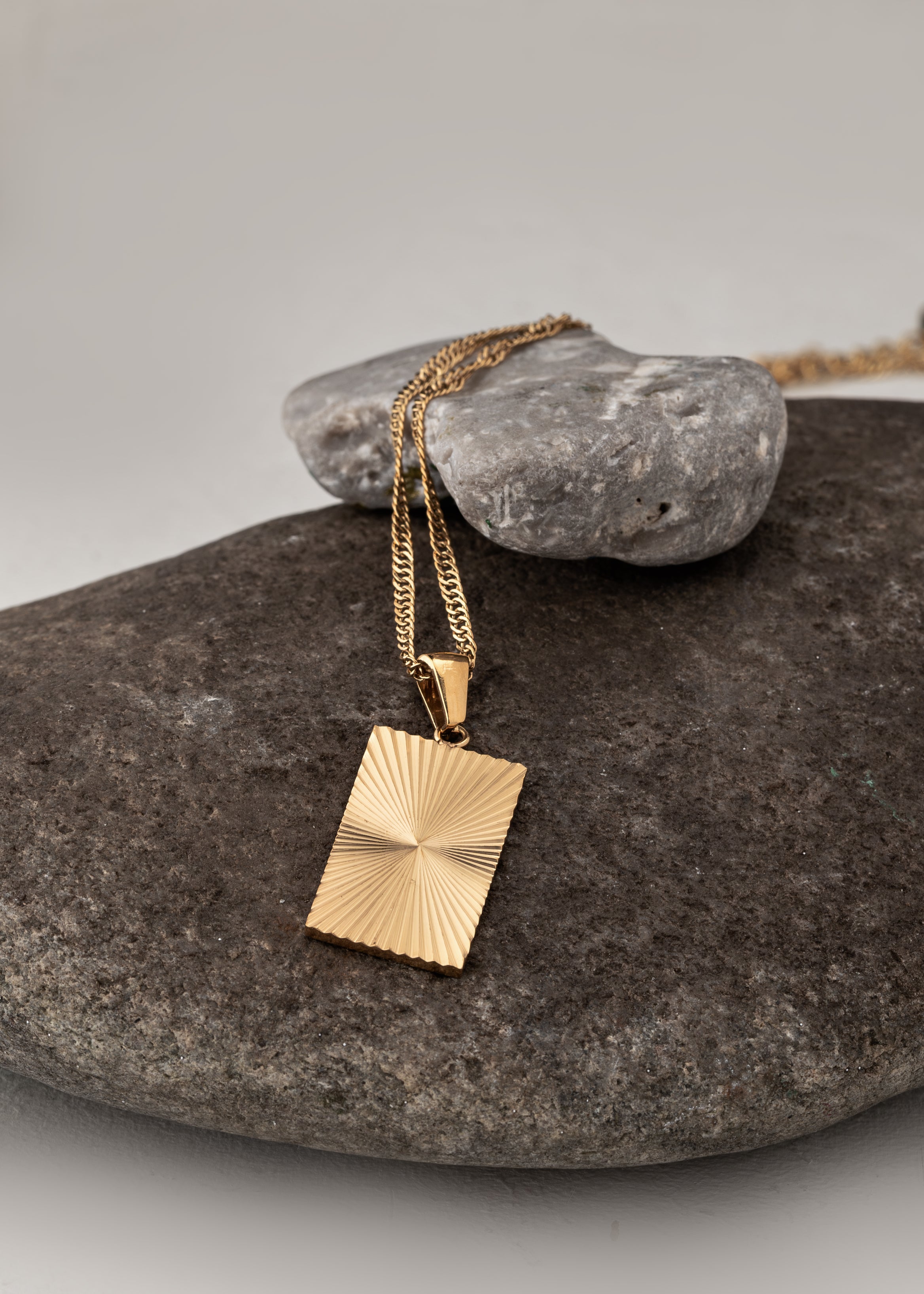 Halskæden måler 46cm i længde med et praktisk 5cm forlængervedhæng, så du kan justere den til den perfekte pasform. Vedhænget måler 22mm og skaber et smukt fokuspunkt, der falder elegant ved halsen. Lavet af 18k guldbelagt 316L rustfrit stål sikrer materialevalget både luksuriøs glans og langvarig holdbarhed.