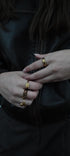 Ringen har et chunky, dome-formet design, der giver den en luksuriøs og moderne silhuet. De små zircon sten er elegant indfattet i overfladen og fanger lyset fra alle vinkler, hvilket skaber en subtil, men iørefaldende effekt. Det er den perfekte ring til dig, der elsker smykker med karakter og detaljer.
