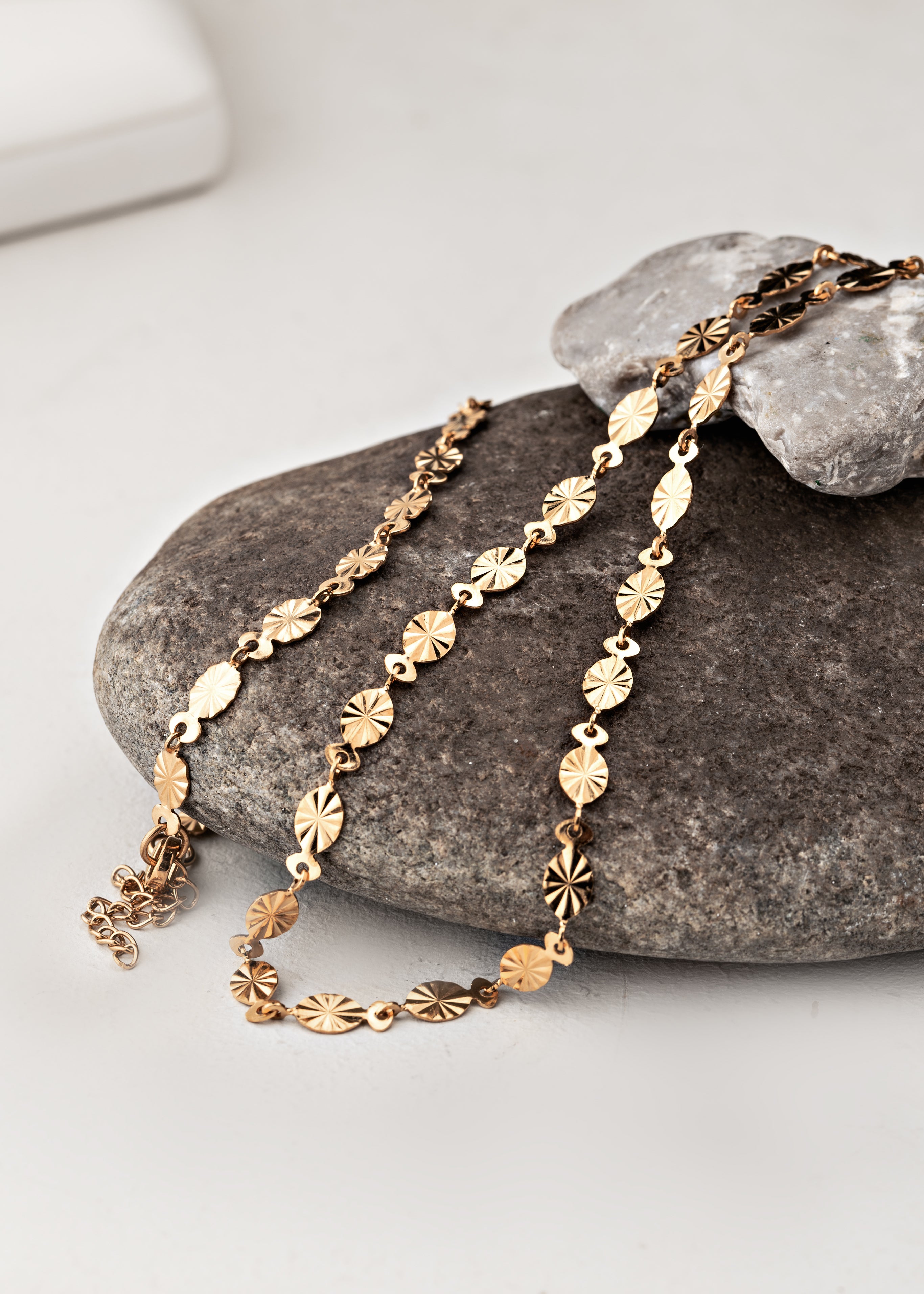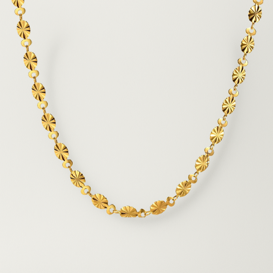 Sunburst Halskæde er et elegant og tidløst design, der bringer varme og glans til din smykkesamling. Med sin 4,5mm brede kæde har denne halskæde den perfekte balance mellem diskret elegance og synlig tilstedeværelse – et must-have smykke til enhver garderobe.