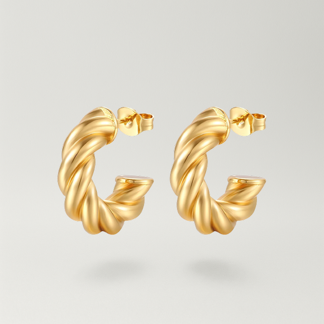 Øreringene måler 20mm og det twistede design fanger lyset fra alle vinkler, hvilket skaber et smukt spil af lys og skygge. Den organiske, spiralformede struktur giver Twist Øreringe en luksuriøs og kunstnerisk æstetik, der skiller sig ud. De er perfekte til både hverdag og festlige lejligheder – alsidige nok til enhver stil.